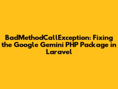 Encountering a BadMethodCallException can be frustrating, especially when it arises from a package you're relying on. This article dives into a specific instance of this exception within the Google Gemini PHP package for Laravel, offering a clear explanation of the issue and a practical solution. Let's get started on resolving this problem so you can seamlessly integrate Google Gemini into your Laravel applications.