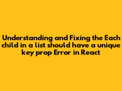 The "Each child in a list should have a unique 'key' prop" warning in React is a valuable reminder of the importance of efficient DOM updates. By understanding why this error occurs and how to fix it, you can build more performant and predictable React applications. Remember to use unique identifiers from your data as key values, avoid using the index as a key unless necessary, and consider generating unique keys if needed. By following these best practices, you'll be well on your way to mastering list rendering in React.